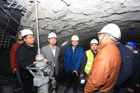 2日上午,何满潮院士一行专家组和科研团队考察了施工现场,详细查看了NPR锚索试验段开展情况,并就施工环节和注意要点提出建议。随后召开了专题会议,会议分两个阶段进行。在第一阶段会议中,各科研团队、建设单位、设计单位、施工单位就NPR锚索试验段各项工作开展情况做了工作汇报,何满潮院士倾听了汇报并作总结,何院士表示木寨岭隧道属于极软岩隧道,是国内外工程难题,形变压力影响严重。实践表明开展NPR恒阻锚索支护试验段使隧道围岩变形得到了有效控制,取得了突破性阶段成果,为后续推广应用,尤其是隧道加宽段、交叉段等关键工程部位的控制奠定了基础。