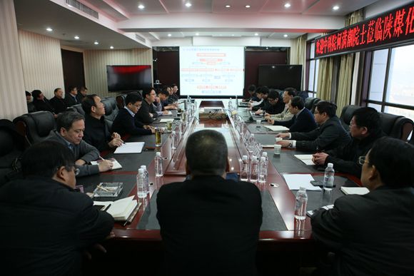 为进一步推进和落实中国科学院战略咨询项目,抓住战略机遇,建设先进采煤工艺和装备工业体系,脱困煤炭企业。2016年1月14日何满潮院士一行应邀至陕煤集团神南矿业公司进行项目咨询交流活动。参与咨询会的有陕煤集团副总经理尚建选、神南矿业公司董事长吴群英、神南矿业公司总经理张森、天地传动总经理耿海涛、天地奔牛副总杜耀波、神南矿业公司的所属矿井领导等。大会主要就我国目前煤炭行业面临的困境及如何脱困进行矿业技术变革进行深入探讨。