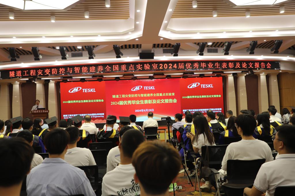 2024年6月23日上午,中国矿业大学(北京)隧道工程灾变防控与智能建养全国重点实验室“2024届优秀毕业生表彰及论文报告会”在福中苑报告厅隆重举行。中国科学院院士、隧道全国重点实验室主任何满潮院士,指导委员会副主任孙晓明、杨晓杰教授等出席会议。实验室全体教师、2024届毕业生及在读研究生共计235人参加了此次活动。