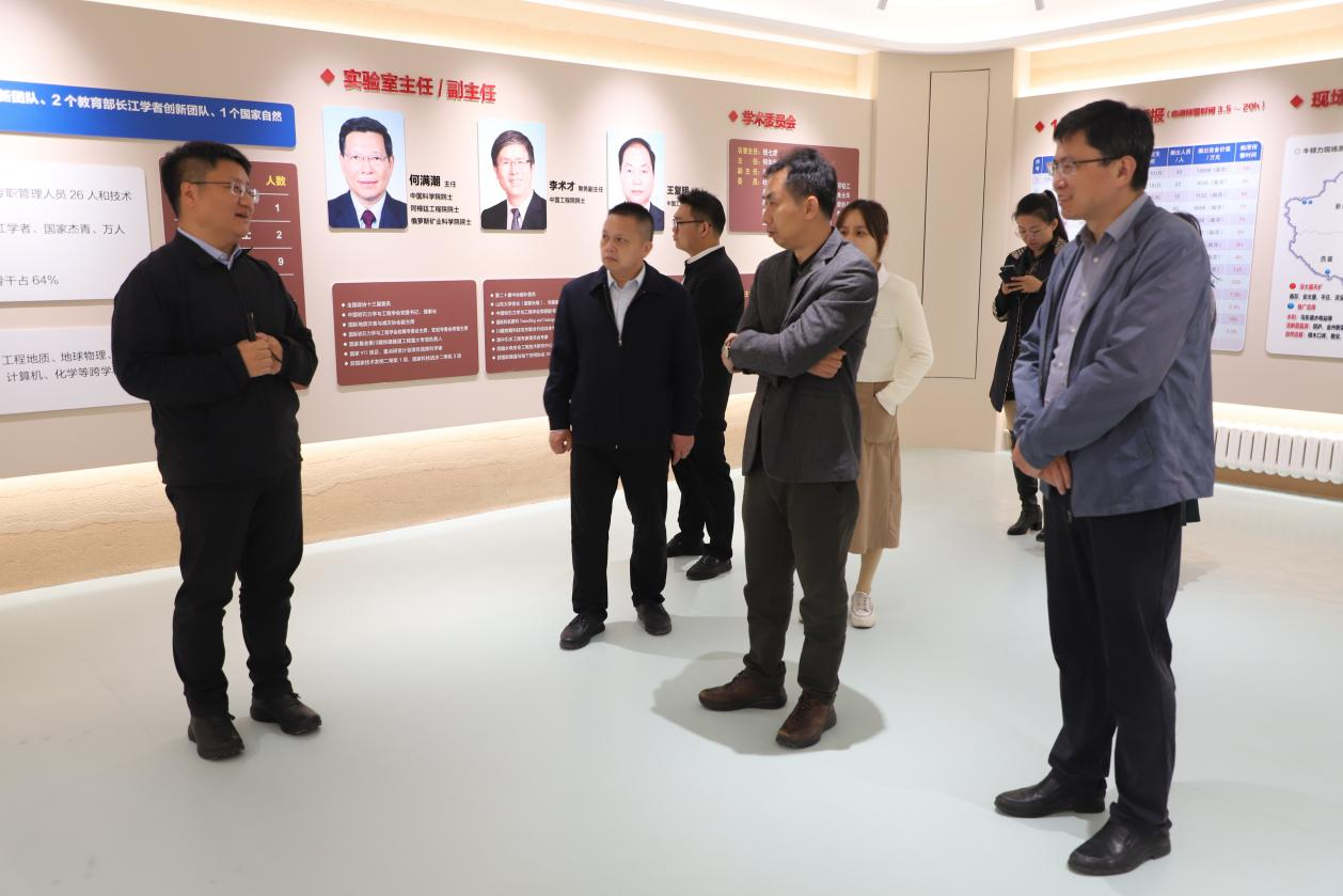 签约仪式前,陶志刚主任还带领张彤炜院长一行参观了3深部岩土力学与地下工程国家重点实验室实验室总部大楼展厅,详细介绍了实验室在隧道工程灾变防控、智能建养等领域的最新研究成果与应用案例。